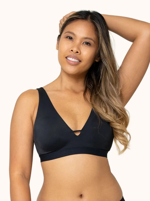 The Eco Deep V Bralette: Jet Black