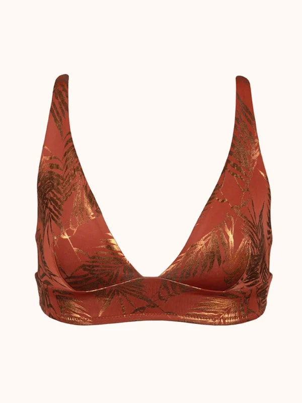 The Metallic Palm Plunge Bralette: Burnished Mahogany/Metallic Palm Print