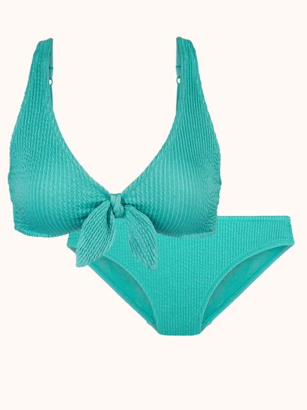 The Ruched Plunge Bralette & Bikini Swim Bundle: Aquamarine