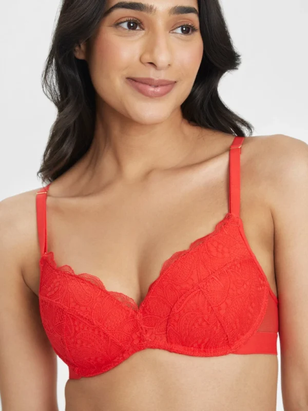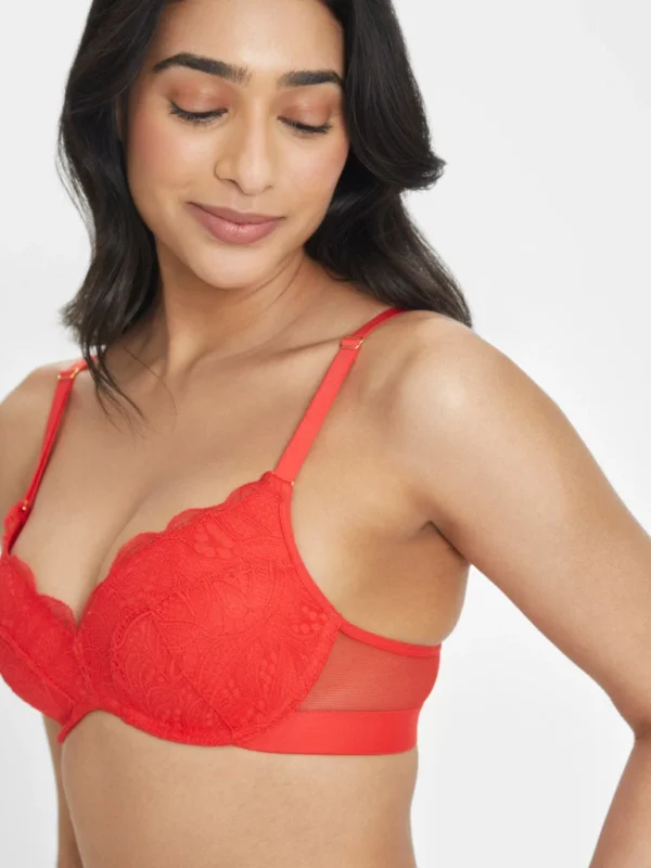 The Lace No-Wire Push-Up: Tomato Red