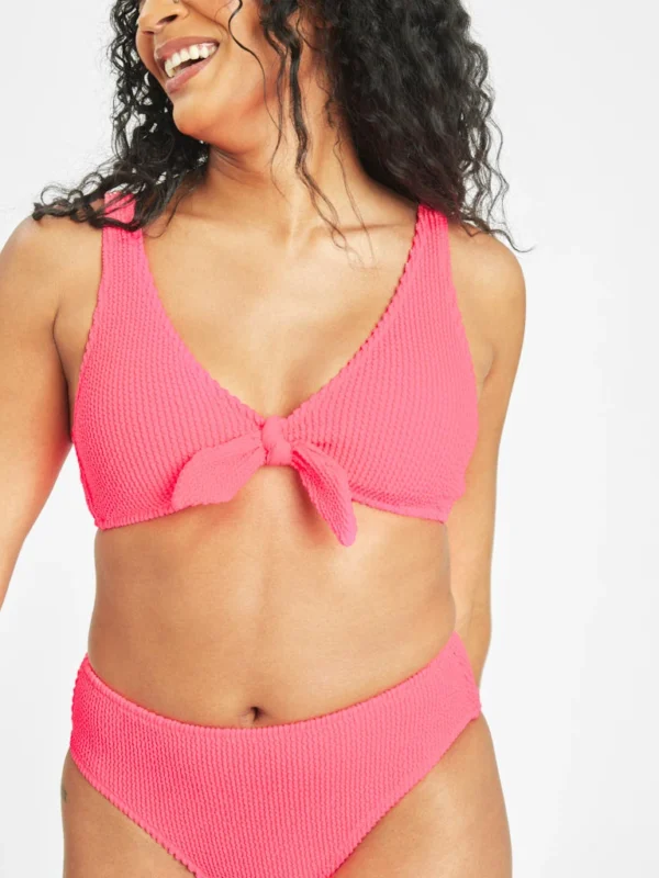 The Ruched Plunge Bralette & High Waist Swim Bundle: Electric Pink
