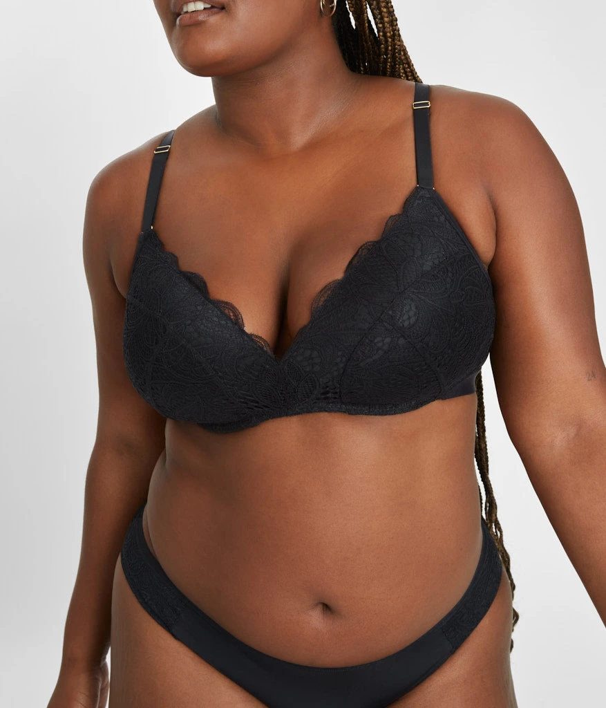This is sexy redefined without sacrificing support and comfort. Our crew fave palm lace brings just the right amount of style into your bra wardrobe with The Lace No-Wire Push-Up! Get ready for statement-making style with scalloped lace detailing on the cups and the perfect amount of bump.