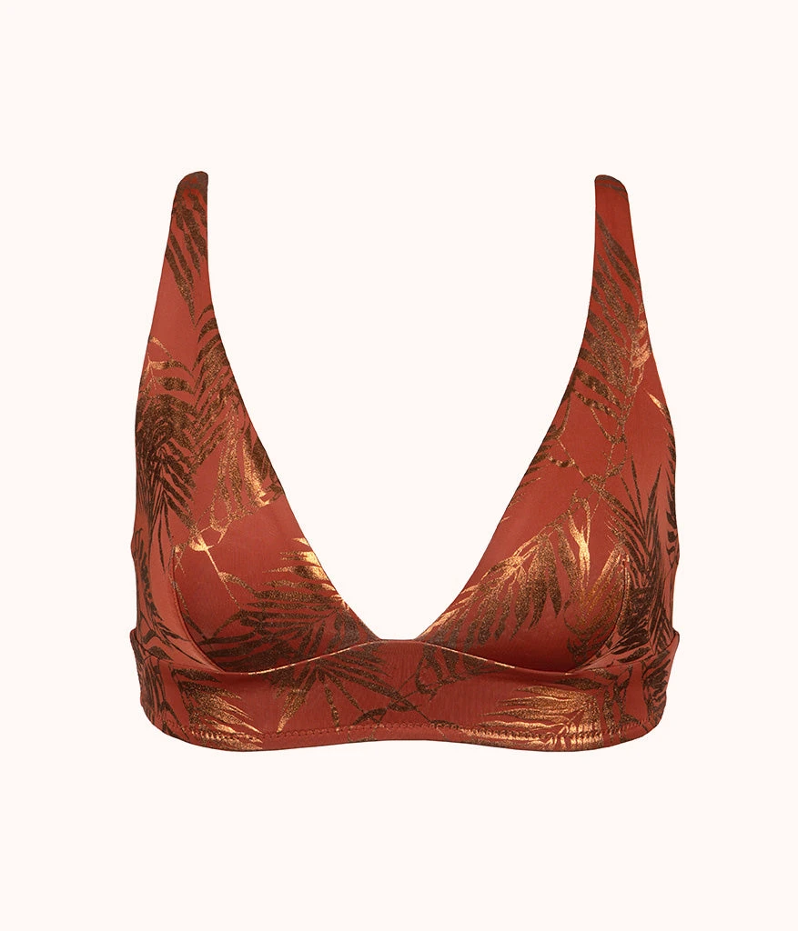 The Metallic Palm Plunge Bralette: Burnished Mahogany/Metallic Palm Print